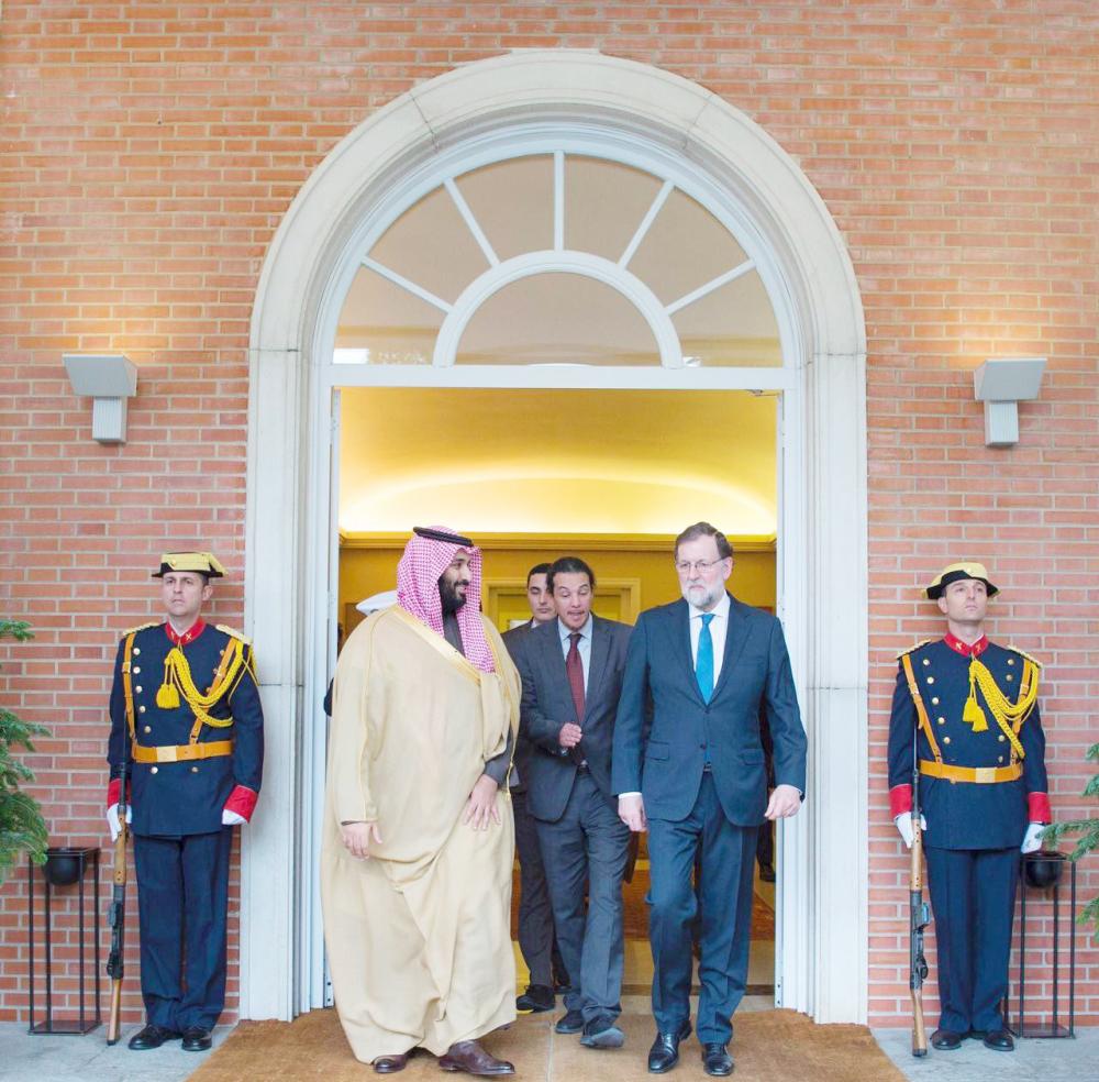 التقى ولي العهد نائب رئيس مجلس الوزراء وزير الدفاع الأمير محمد بن سلمان بن عبدالعزيز في العاصمة الإسبانية (مدريد)، رئيس الوزراء الإسباني ماريانو راخوي بحضور وفدي البلدين، واستعرض اللقاء العلاقات السعودية ــ الإسبانية، والشراكة الثنائية في مختلف المجالات، وفرص تطويرها.