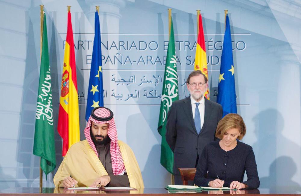 وجرى التوقيع على 6 اتفاقيات ومذكرات وبرامج ثنائية في المجال الدفاعي والنقل الجوي والجانب التعليمي والثقافي والتقني والتنموي، إذ وقع ولي العهد ووزيرة الدفاع الإسبانية ماريا كوسبيدال على الملخص التنفيذي لتسهيل الإجراءات اللازمة لتوقيع وزارة الدفاع في المملكة على عقد توريد سفن من شركة نافانتيا الإسبانية تعزيزا للتعاون في مجال الدفاع بين وزارتي الدفاع في البلدين.