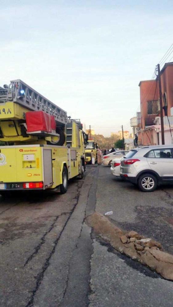 فرق الدفاع المدني تباشر إطفاء الحريق. (عكاظ)
