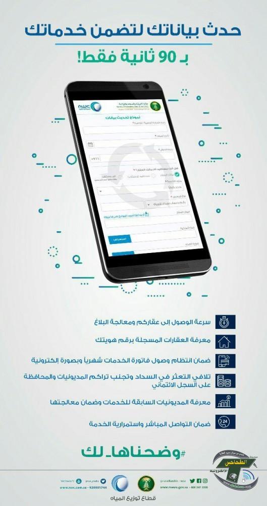 وبين أن هناك عددًا من المشتركين لا تصلهم فواتير خدمات استهلاك المياه بسبب عدم تحديثهم البيانات الخاصة بعقاراتهم، مؤكدًا أن تحديث البيانات أصبح إلزاميًا لكل العقارات حتى لا يتم تراكم المديونية، لافتا في هذا الصدد إلى أن قطاع توزيع المياه أطلق مؤخراً حملة تحديث البيانات للعملاء، وذلك لتحقيق مبادرة التحول الرقمي ضمن أهداف برنامج التحول الوطني 2020.