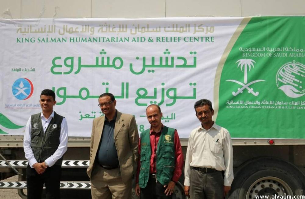مركز الملك سلمان يوزع 3500 كرتون من التمور بمحافظة تعز