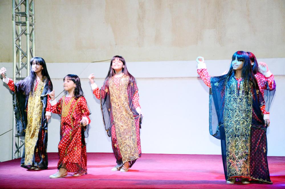 طفلات مشاركات في الاحتفال باليوم العالمي للتراث.