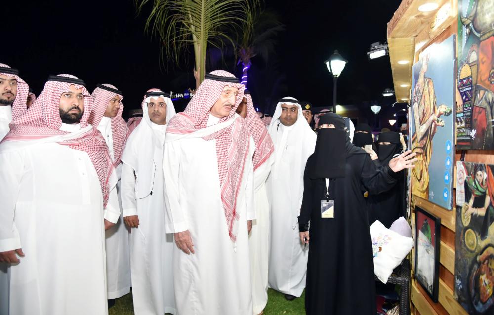 وتجول أمير المنطقة، ونائبه، في أرجاء المعرض الفني الذي حظي بمشاركة 60 فناناً وفنانة من المبدعين والمهتمين بالمجالات الفنية بجميع أنواعها، واستمعا إلى شرح من المشاركين والمشاركات عن مختلف الأعمال من الرسم والتصوير والتصاميم الفنية والأعمال الإبداعية والحرفية المتنوعة التي تبرز مواهب أبناء المنطقة وتقدم تميزهم الفني.