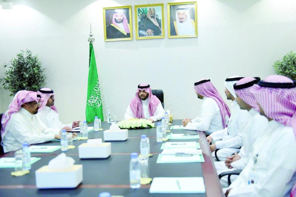 الأمير فيصل بن خالد مستقبلا منسوبي المركز. (عكاظ)