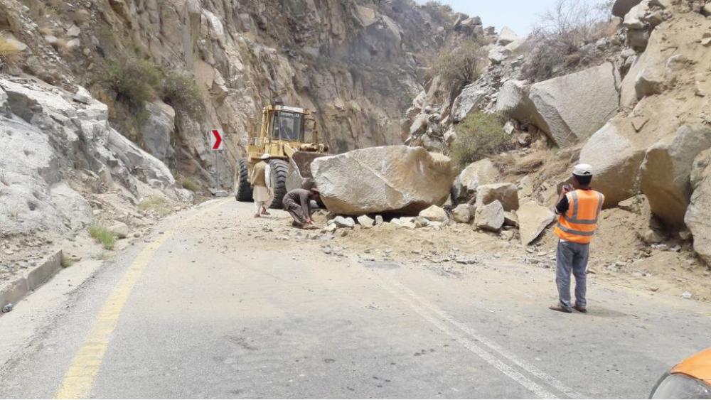 5 ساعات لإزالة صخرة «حزنة» وعاصفة تقطع كهرباء حائل