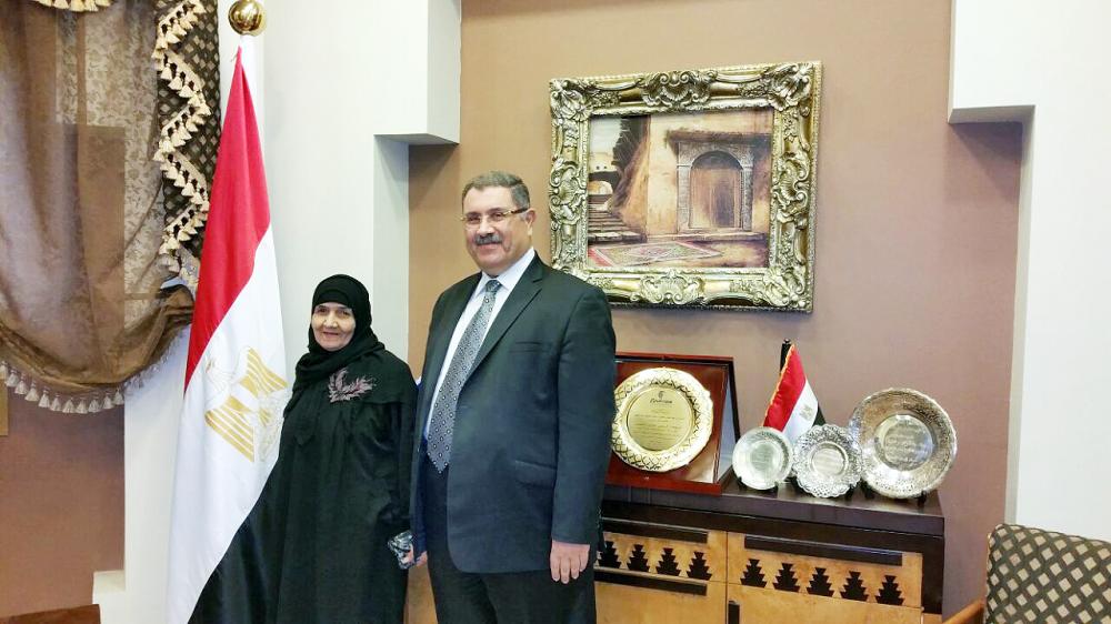 السفير رمضان مع الحاجة سعدية عقب الإفراج عنها.