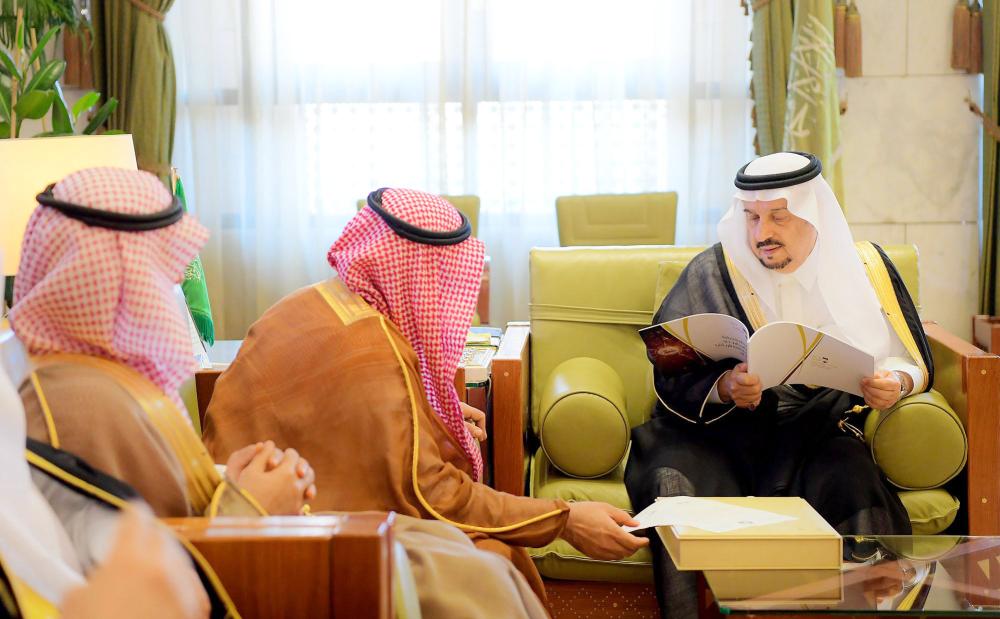 الأمير فيصل بن بندر مطلعا على خطة أمانة منطقة الرياض. (عكاظ)