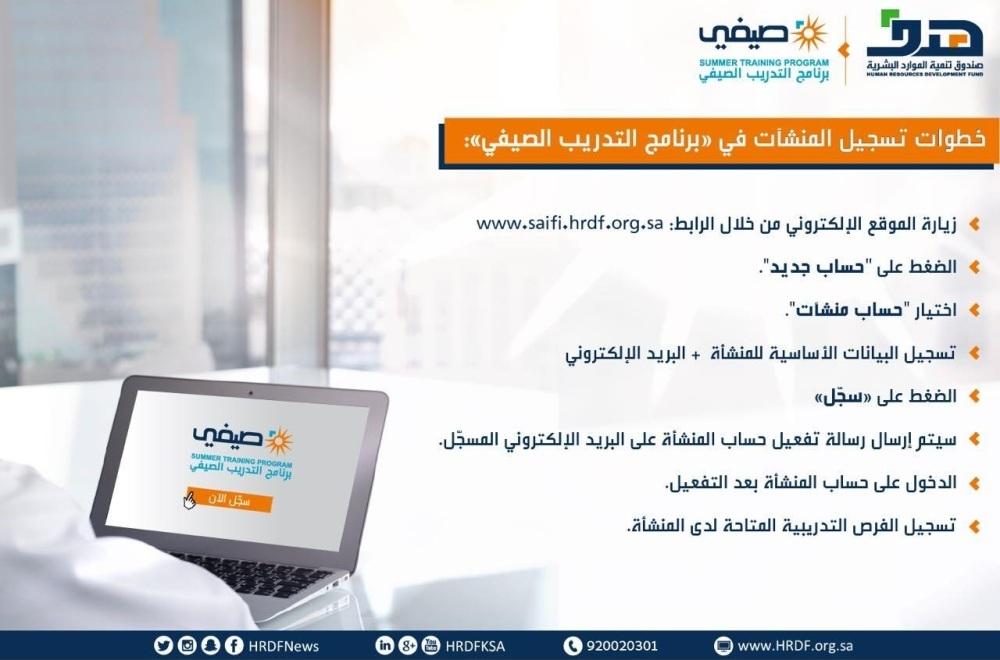 أعد صندوق تنمية الموارد البشرية (هدف)، دليلًا إرشاديًا للمنشآت على الموقع الإلكتروني لبرنامج التدريب الصيفي (صيفي) عبر الرابط http://saifi.hrdf.org.sa، وذلك لشرح كيفية المشاركة والتسجيل في البرنامج، والاستفادة من الطاقات السعودية الشابة، عبر تدريبهم على رأس العمل أو في جهات التدريب المعتمدة.