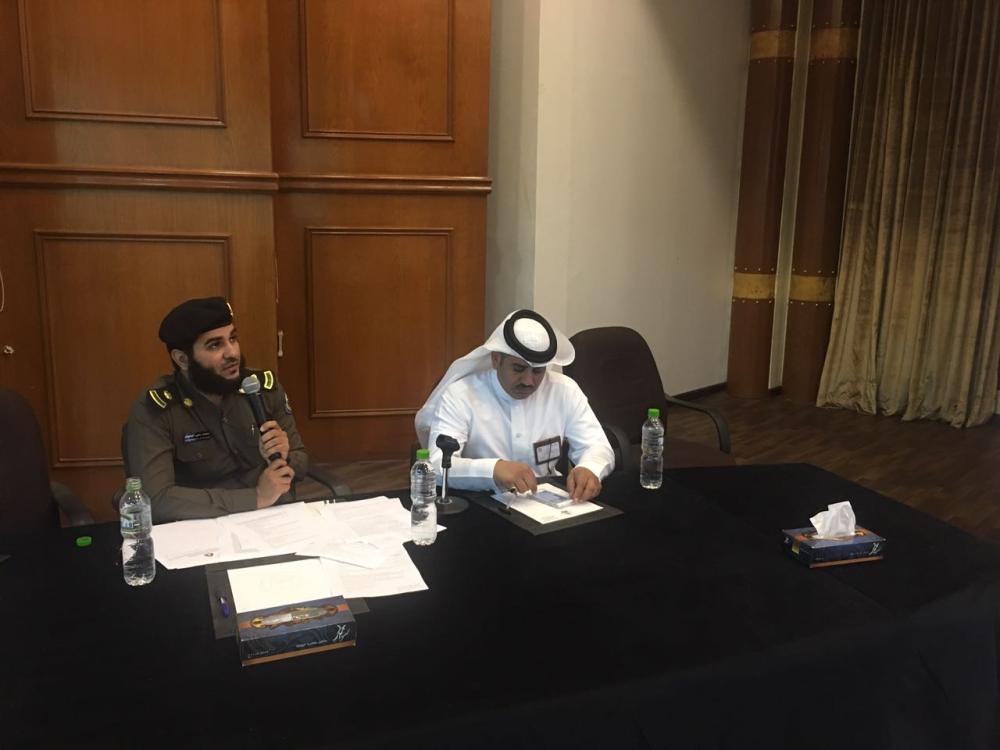 الرائد المطيري أثناء المحاضرة. (عكاظ)