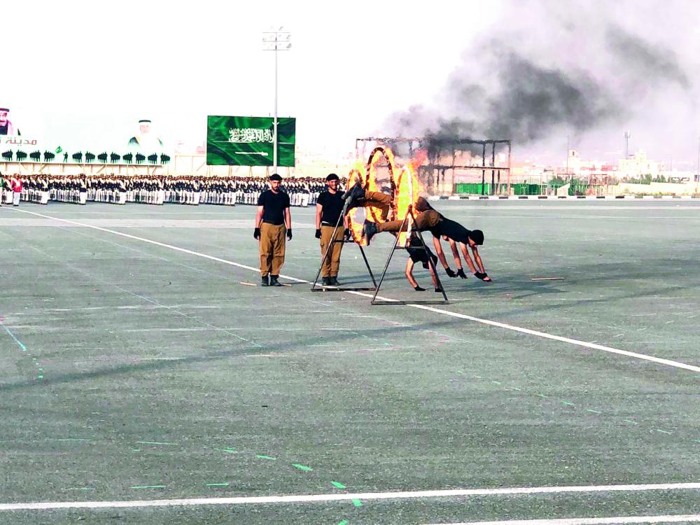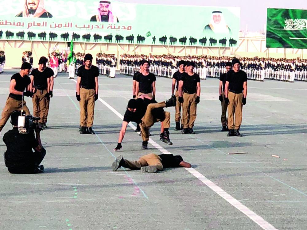 وأشار قائد مدينة تدريب الأمن العام بمنطقة مكة المكرمة العقيد ركن أحمد الميمان، إلى أن الخريجين تلقوا تدريبات في مجال التطبيق العملي الذي يحاكي واقع العمل الأمني الميداني وفوائده على رفع مستوى الطلاب وتهيئتهم والتعامل مع المواقف بكل كفاءة، مؤكدا أن ما نشهده من نتائج أمنية نتيجة التدريب عالي المستوى ليكونوا رجال الأمن سدا منيعا للبلاد، بعد ذلك انطلق العرض العسكري للخريجين، استخدموا فيه الرماية بأشكال عدة على أهداف ثابتة، وباستخدام المرآة العاكسة، وبوضعية السلاح المقلوب، كما تنوعت العروض في استخدام الذخيرة من أوضاع عدة داخل دوريات الأمن من على الزجاج ومقدمة المركبة وأعلاها.