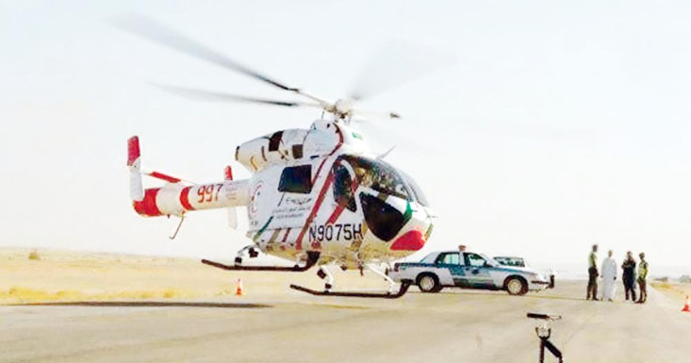 إحدى طائرات الهلال الأحمر في مهمة إنقاذ. (عكاظ)