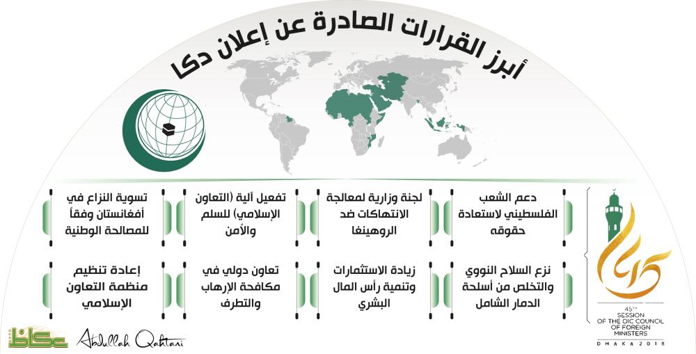 جدد وزراء خارجية الدول الأعضاء في منظمة التعاون الإسلاميّ في «إعلان دكا» الصادر عن الدورة الخامسة والأربعين لمجلسهم (دورة القيم الإسلامية من أجل السلام والتنمية المستدامين)، الذي اختتم أعماله أمس (الأحد) في جمهورية بنغلاديش الشعبية، رفضهم القاطع لاعتراف الولايات المتحدة الأمريكية بالقدس عاصمة لإسرائيل ونقل سفارتها إليها، مؤكدين أن هذا الأمر يمثل استفزازا لمشاعر المسلمين، وخرقا للوضع السياسي والقانوني والتاريخي للمدينة، وانتهاكا واضحا للقانون والقرارات الدولية، ولفتوا إلى أن الإدارة الأمريكية تتحمل المسؤولية الكاملة عن جميع تبعات خطوتها غير القانونية، التي تساهم في زيادة تفاقم النزاع وفي تشجيع إفلات السلطة القائمة بالاحتلال من العقاب، مشددين «إن هذه الخطوة تبطل دور الإدارة الأمريكية المزعوم كوسيط للسلام».