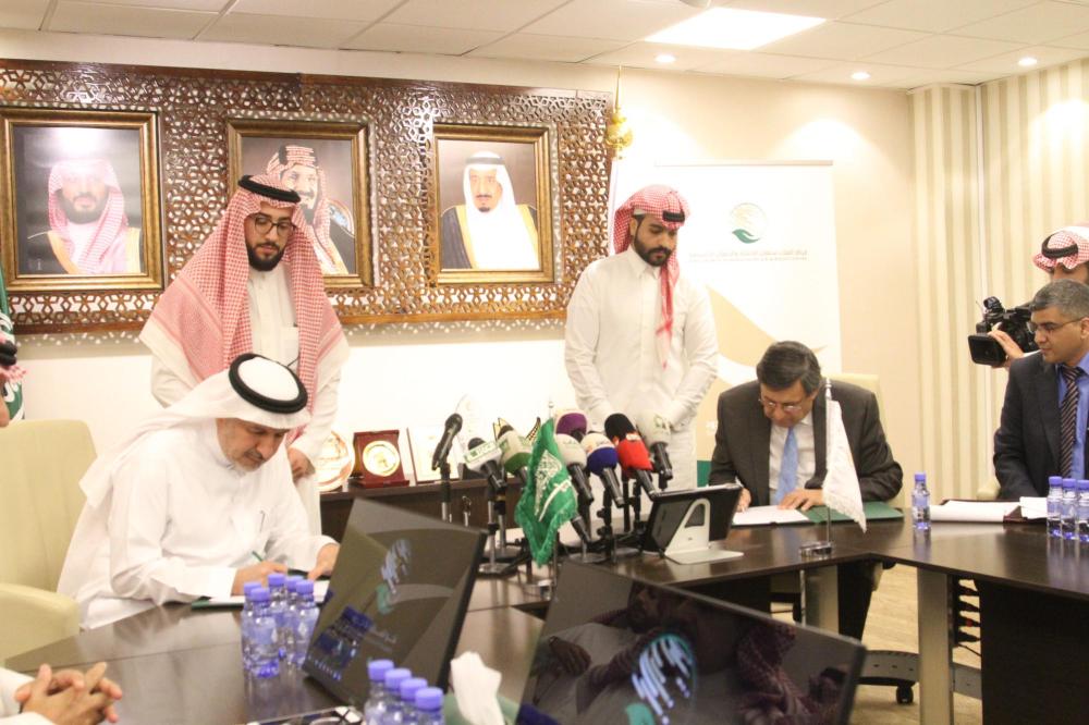 الربيعة وخليكوف يوقعان الاتفاق أمس في الرياض. (تصوير: عبدالعزيز اليوسف)