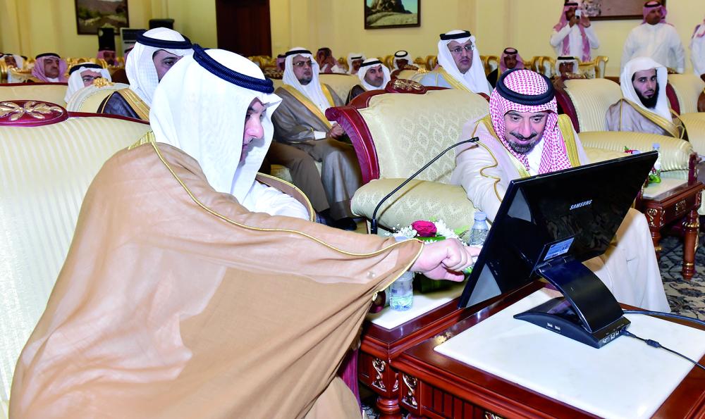 أمير نجران مدشناً المشاريع ويبدو الوزير الفضلي. (عكاظ)