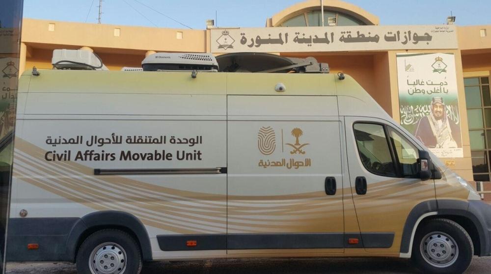 وحدة الأحوال المدنية المتنقلة تقدم خدماتها لمنسوبات ومراجعات جوازات المدينة المنورة. (واس)