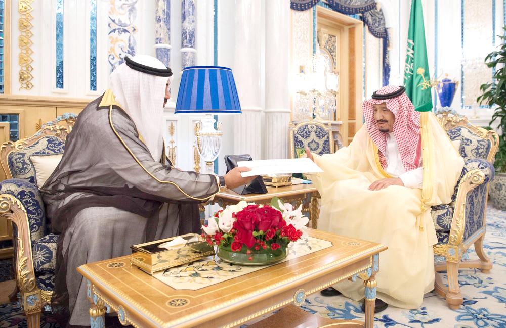 تسلم خادم الحرمين الشريفين الملك سلمان بن عبدالعزيز، رسالة خطية من أخيه أمير دولة الكويت الشقيقة الشيخ صباح الأحمد الجابر الصباح.