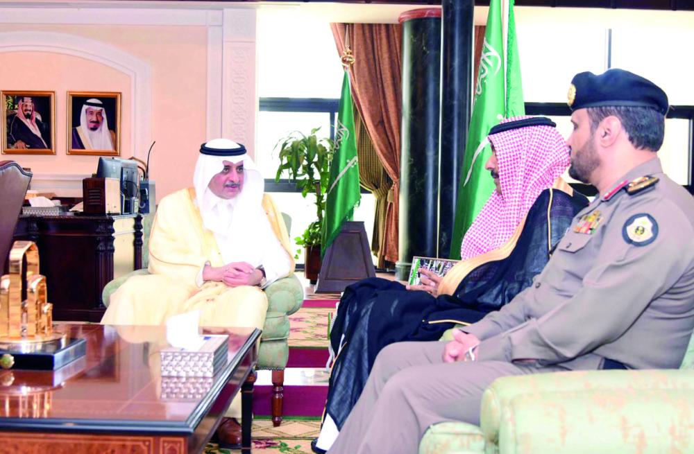 الأمير فهد بن سلطان مستقبلاً الثنيان والشدي. (عكاظ)