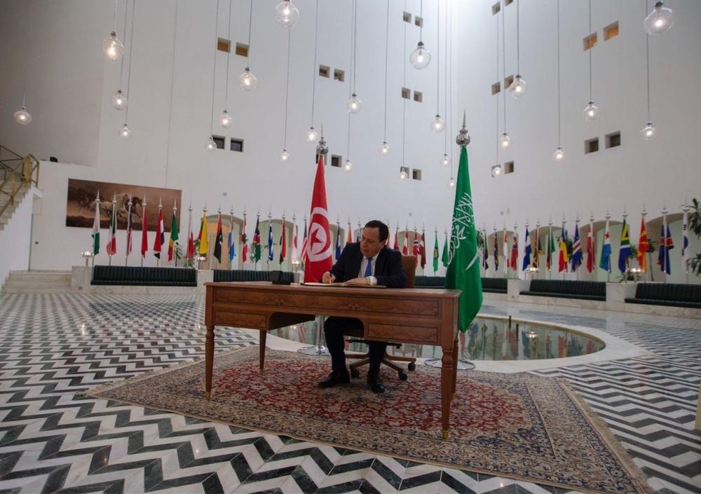 استقبل وزير الخارجية عادل بن أحمد الجبير، في مكتبه بديوان الوزارة، وزير خارجية جمهورية تونس خميّس الجهيناوي يرافقه وزير المالية التونسي رضا شلغوم.