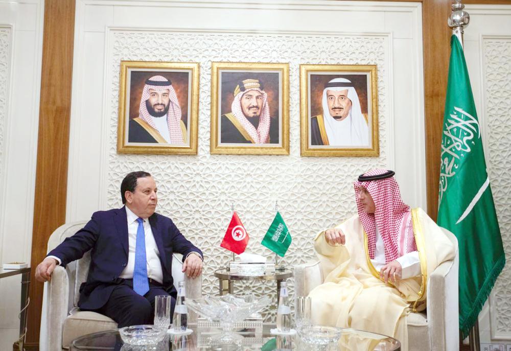 من جهة ثانية، استقبل الجبير وزير خارجية جمهورية تونس خميّس الجهيناوي يرافقه وزير المالية التونسي رضا شلغوم.