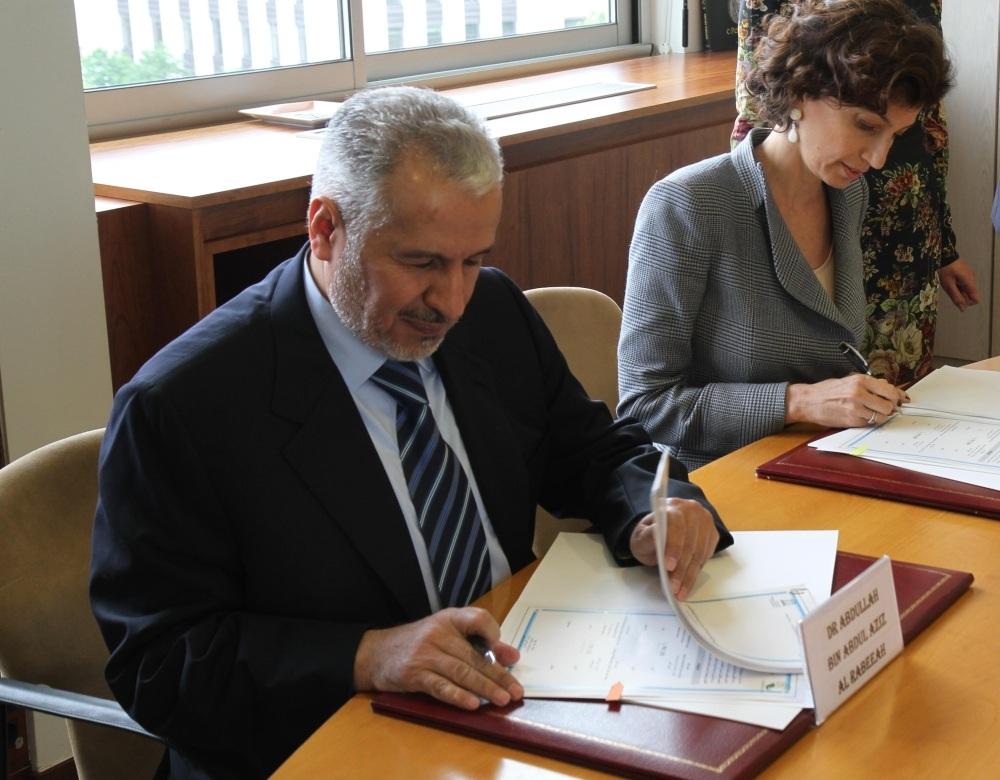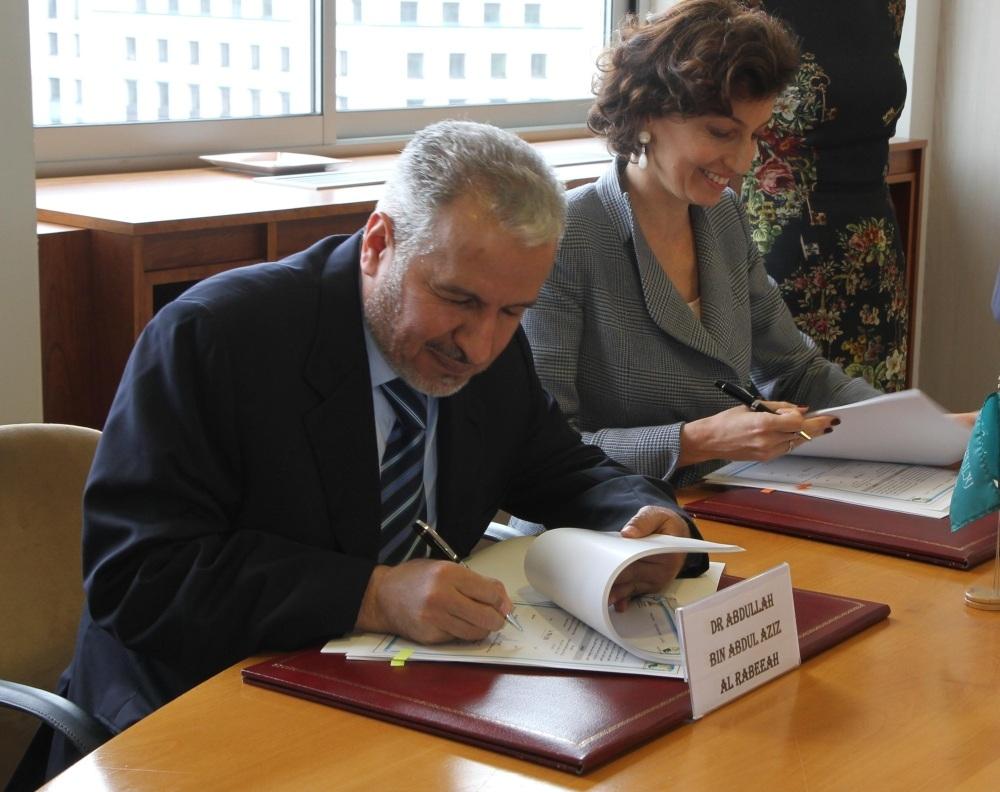 ووقع المشروعين المستشار بالديوان الملكي المشرف العام على المركز الدكتور عبدالله بن عبدالعزيز الربيعة، فيما وقعه عن منظمة اليونيسكو المديرة العامة للمنظمة الدكتورة أودري أزولاي.
