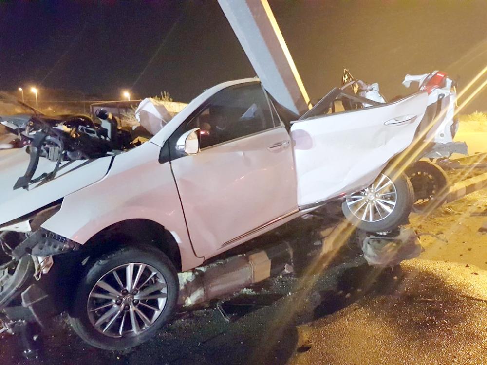 ارتطام إحدى المركبتين بعمود الكهرباء.