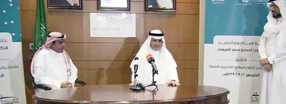 أطلق وزير التعليم الدكتور أحمد العيسى أمس (الخميس) بوابة التسجيل في الدورات الصيفية للمعلمين والمعلمات ودشن أيقونة استقبال طلبات الالتحاق ببرنامج التطوير المهني التعليمي الصيفي.