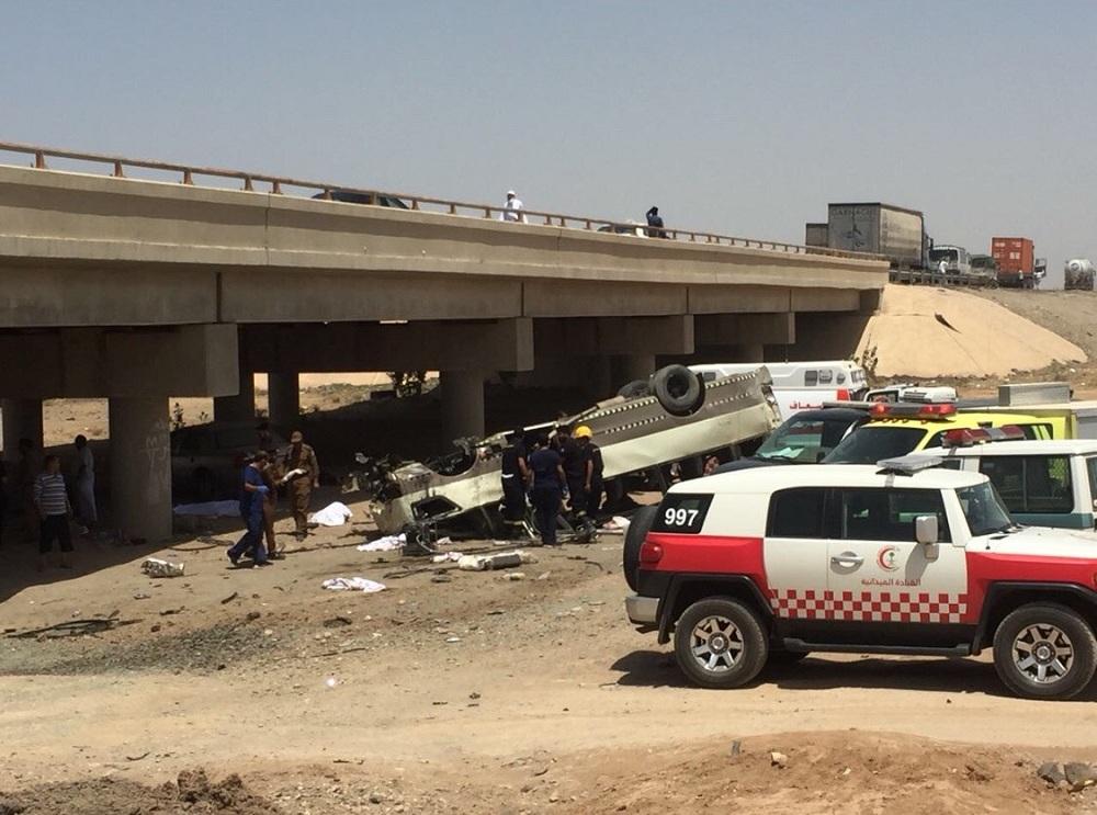 لقي تسعة أشخاص مصرعهم وأصيب 18 أخرون في حادثة مروعة لحافلة ركاب كان يستقلها آسيويون، وقعت على طريق الهجرة (مكة المكرمة - المدينة المنورة) عند الكيلو 96 تحديداً.