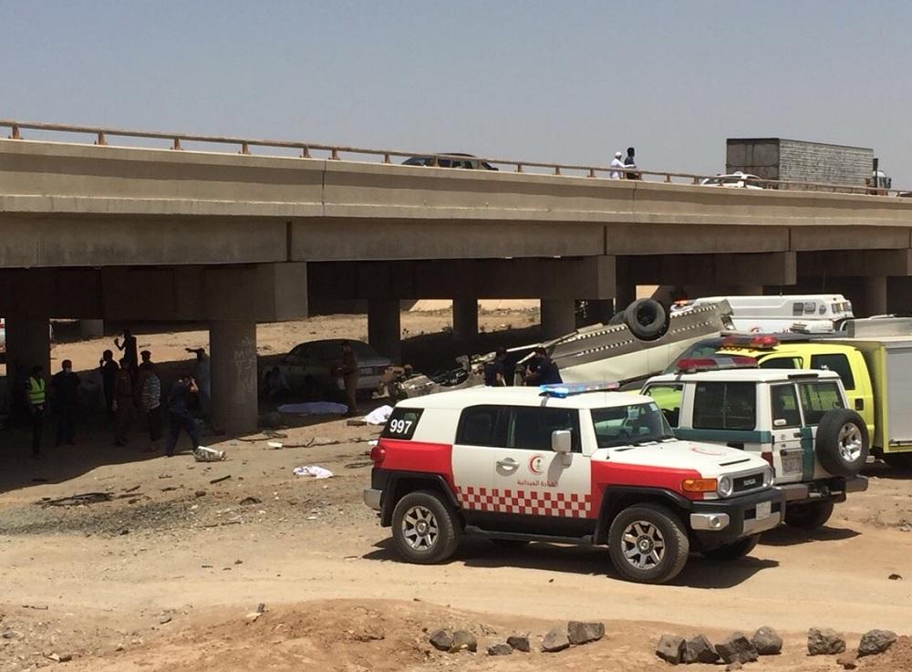 المدينة: مصرع وإصابة 27 شخصاً بانقلاب حافلة في طريق الهجرة