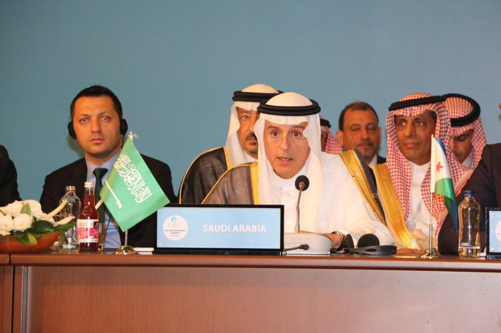 دعا وزير الخارجية السعودي عادل الجبير خلال كلمة المملكة التي ألقاها في مؤتمر القمة الاستثنائي لمنظمة التعاون الإسلامي الطارئة في إسطنبول اليوم (الجمعة) الإدارة الأمريكية إلى التراجع عن قرارها بنقل سفارتها إلى القدس، والانضمام للمجتمع الدولي المحب للعدالة والسلام.