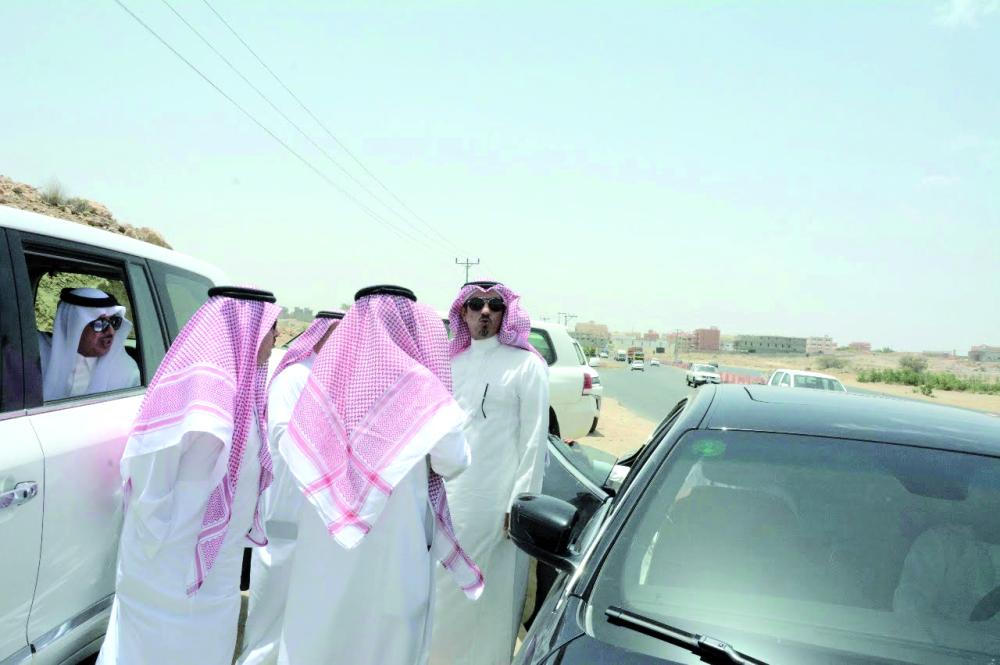 محافظ خميس مشيط وأعضاء المجلس المحلي خلال تفقدهم أحد المشاريع. (عكاظ)