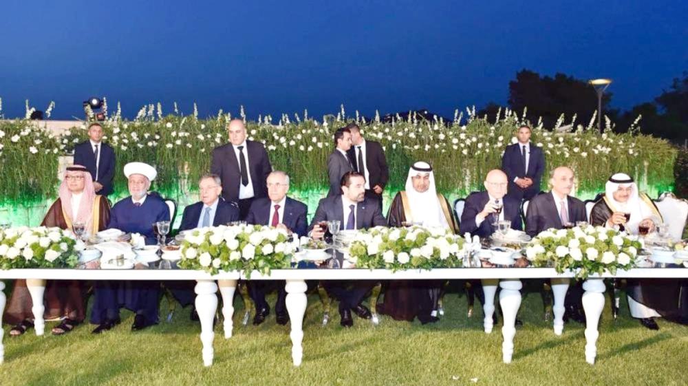 وفيما رحب البخاري بالحضور قائلاً: أهلا بكم في بيت المملكة العربية السعودية في لبنان بيت كل اللبنانيين، مؤكدا أن علاقة السعودية ولبنان ضاربة الجذور وراسخة رسوخ الأرز، وشامخة شموخ النخيل الذي يتحدى جفاف الصحراء.. أكد الحريري أن البيت السعودي يجمع اللبنانيين ولا يفرق بينهم. وقال: ما تريده المملكة من اللبنانيين أن نبقى على وحدتنا وعروبتنا والتزامنا باتفاق الطائف. وأكد أن تاريخ المملكة مع لبنان مليء بالخير والمحبة، والتعاون ونحن مع كل الشرفاء في البلد على عهدنا بالوفاء لهذا التاريخ، وعلى تمسكنا بأفضل العلاقات مع الدول العربية الشقيقة. وتابع: أملنا أن يكون هذا اللقاء رسالة خير وتضامن مع لبنان. حضر المأدبة الرئيس اللبناني السابق ميشال سليمان، ورئيسا الوزراء السابقان فؤاد السنيورة وتمام سلام، ورئيس حزب «القوات اللبنانية» سمير جعجع، وعدد من الوزراء والنواب والسفراء والقيادات السياسية والدينية والإعلامية في لبنان.