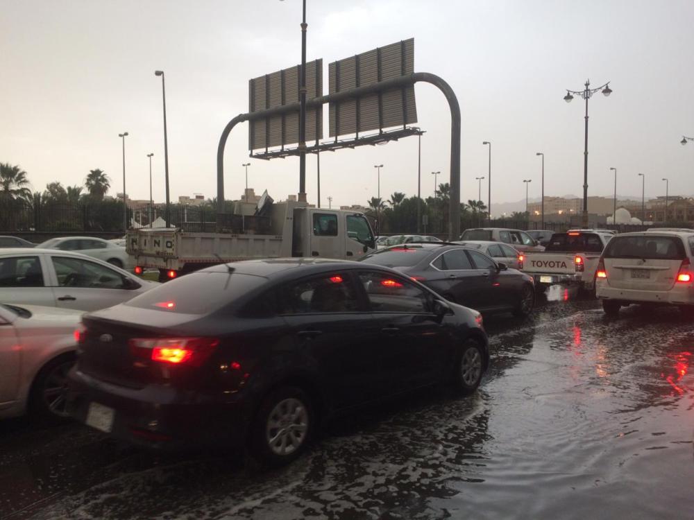 وقد رافق هطول الأمطار عوالق ترابية خفيفة حدت نسبياً من مدى الرؤية الأفقية، وما زالت السماء ملبدة بالغيوم، ومن المتوقع هطول أمطار متفرقة خلال الساعات القادمة، حسب حسان السحيمي أحد المٌهتمين بالطقس والذي يتوقع استمرارها خلال الساعات القادمة.