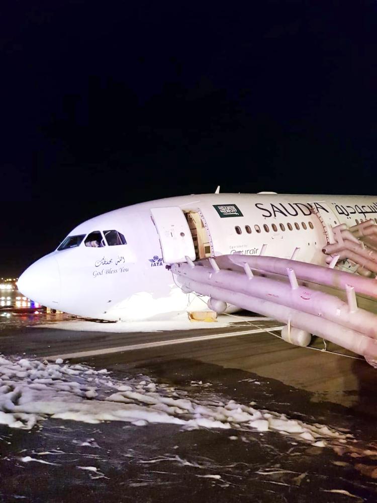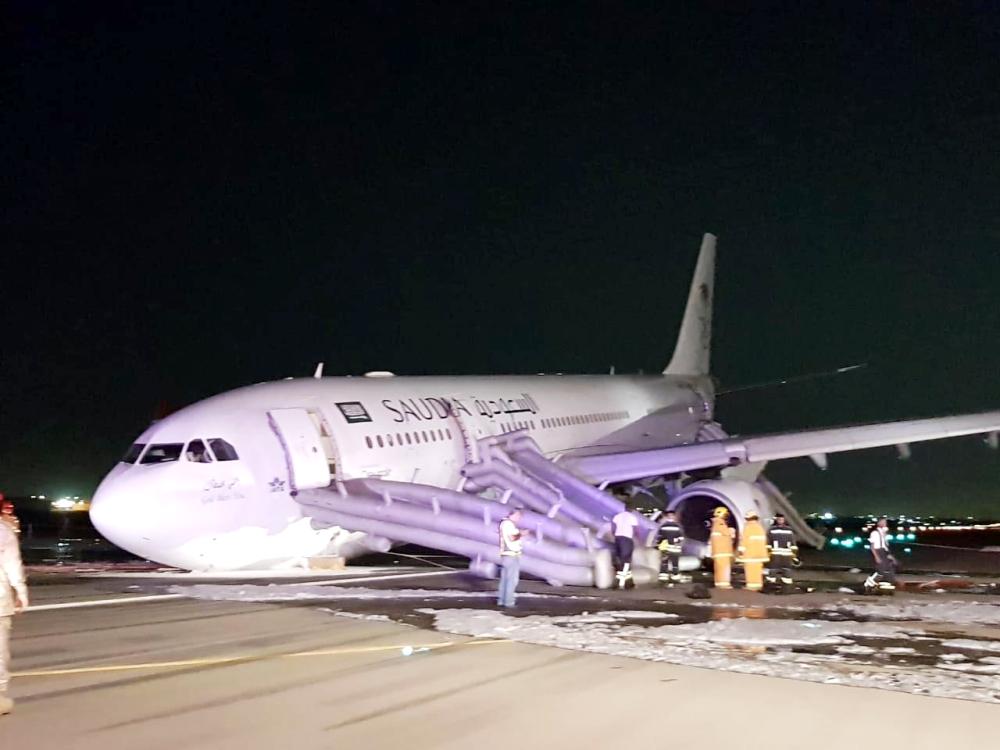 وكان مكتب تحقيقات الطيران أعلن أن فرق الإطفاء والإنقاذ بالمطار باشرت عملها وتعاملت مع الحالة الطارئة، وتم إخلاء الركاب، وقد تعرّض (52) راكباً لإصابات طفيفة، فيما تعرضت راكبة لبعض الكسور أثناء عملية الإخلاء، وتتلقى حاليا العلاج الطبي اللازم.