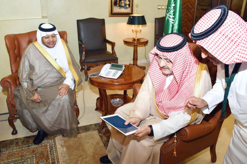 الأمير مشعل بن ماجد مدشناً مشروع «لبيك». (عكاظ)