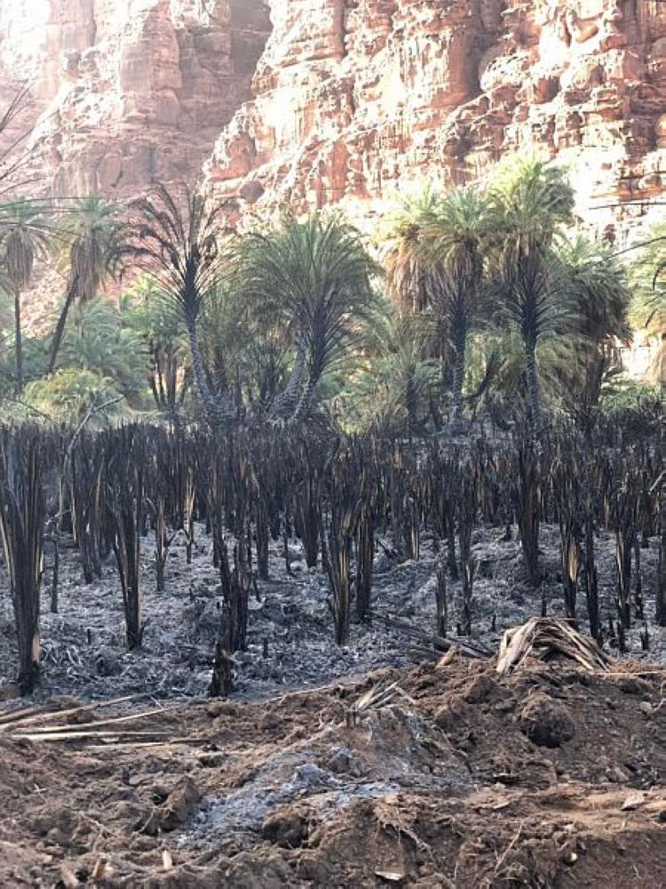 وأوضح المتحدث باسم الدفاع المدني بمنطقة تبوك النقيب عبدالعزيز بن فرحان الشمري، أن غرفة العمليات بالدفاع المدني تلقت مساء أمس بلاغاً عن اشتعال النيران في أشجار بردي ونخيل في وادي قراقر في منطقة الديسة 125 كم شرق محافظة ضباء.