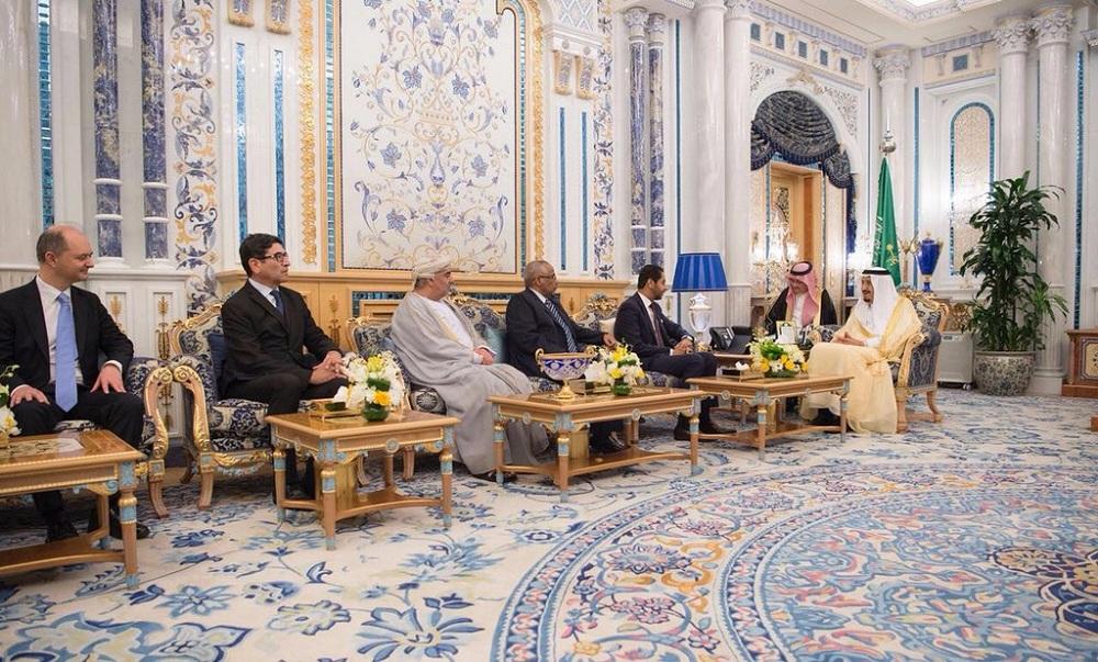 استقبل خادم الحرمين الشريفين الملك سلمان بن عبدالعزيز آل سعود في مكتبه بقصر السلام في جدة اليوم (الأحد)، عميد السلك الدبلوماسي سفير جمهورية جيبوتي لدى المملكة ضياء الدين سعيد بامخرمة، ورؤساء المجموعات الدبلوماسية المعتمدين لدى المملكة وهم كل من سفير إريتريا رئيس المجموعة الأفريقية محمد عمر محمود، وسفير سلطنة عمان رئيس المجموعة العربية أحمد بن هلال البوسعيدي، وسفير الأرجنتين رئيس مجموعة أمريكا الجنوبية خايمي سرجيو سردا، وسفير النمسا رئيس المجموعة الأوروبية كريغور كوسلر، وسفير سنغافورة رئيس المجموعة الآسيوية لورانس أندرسون، وسفير أستراليا رئيس مجموعة أوقيانوسيا رالف كينغ، وسفير كندا رئيس مجموعة أمريكا الشمالية دنيس هوراك.