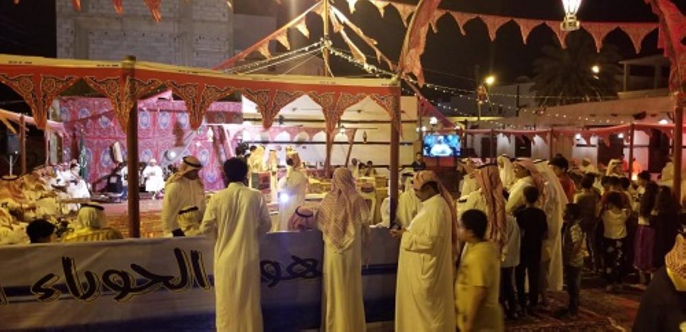 وما أن وصل راعي الحفل حتى عزف السلام الملكي ثم تجول على الأركان المختلفة والمتنوعة من أركان الجهات المشاركة كالدفاع المدني، والصحة، ومكافحة المخدرات، والثروة السمكية، وغيرها، وكذلك بسطات الشباب للمقليات والبسطات الشعبية ومسرح فعاليات الأطفال وركن ألعاب الأطفال، وركن الجاليات العربية، وركن مطليات الذهب والفضة على طريقة الصاغه قديماً، وركن هواة تربية وبيع الطيور والأسر المنتجة، مستمعاً والحضور إلى شرح عن كل ركن من مختصه، ليعود إلى ركن القهوة الشعبية الذي صمم بطابع تراثي وعلى شكل سفينة السنبوك التاريخيه في جلساته وإضاءاته وديكوره، لتنطلق منها الفقرات المتنوعة بالقرآن الكريم مع القارئ خالد الشريف، ومقدم البرامج حسن الشريف الذي استضاف كبار السن في سردهم لقصص الذكريات، وبعض الشعراء في إلقاء بعض المقتطفات الشعرية والكسرات المتناسبة مع روحانية الشهر والحنين إلى الماضي ومشاركات الأطفال التي تحمل الطموح وتقتبس من كلمات ولي العهد صناعة الحلم والسعي لتحقيقه وفق رؤية المملكة 2030.