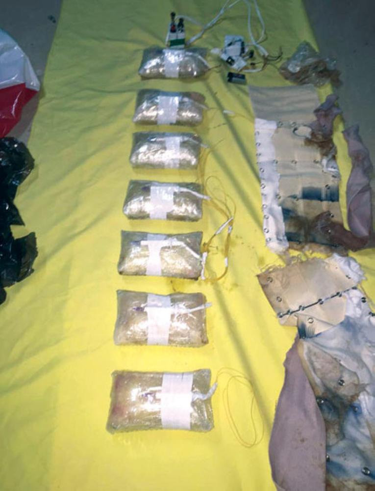 كما اتهمته النيابة بالاشتراك في حيازة حزام ناسف، وتخزينه وإرساله ما من شأنه المساس بالنظام العام.