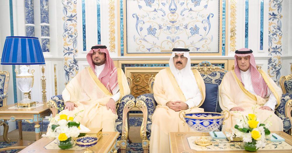 حضر الاستقبال وزير الداخلية الأمير عبدالعزيز بن سعود بن نايف بن عبدالعزيز، ووزير الدولة عضو مجلس الوزراء الدكتور مساعد بن محمد العيبان، ووزير الخارجية عادل بن أحمد الجبير.