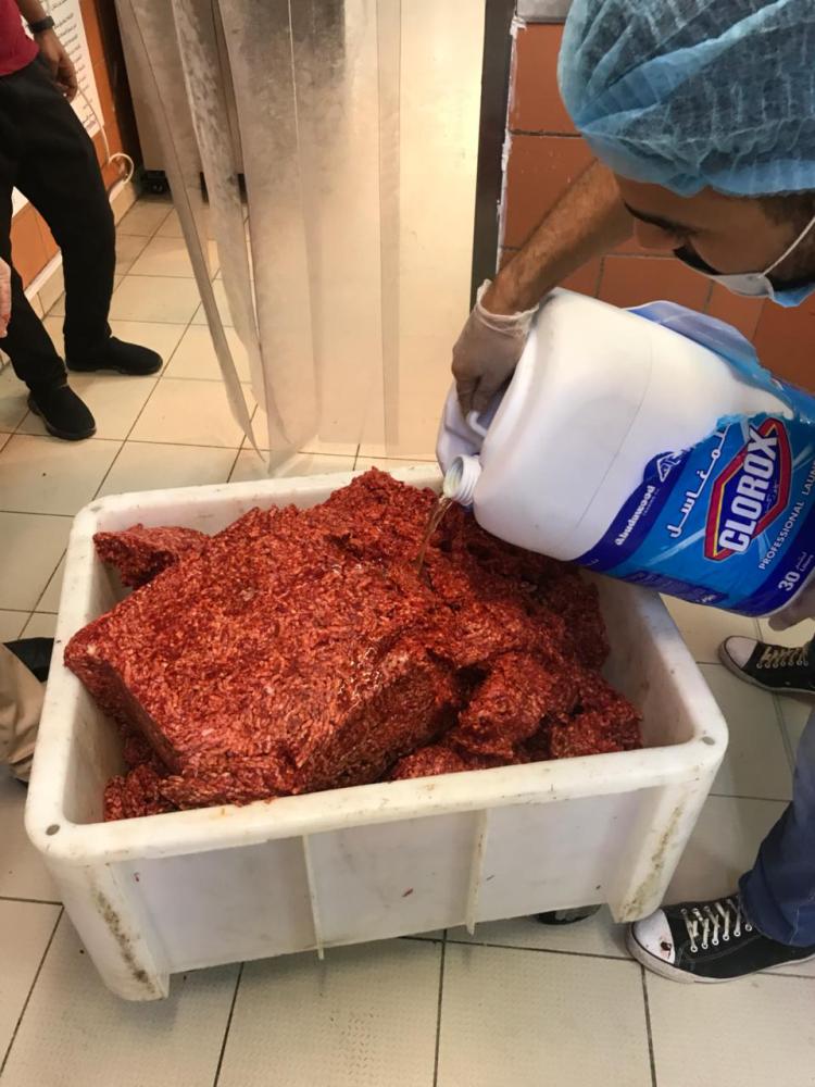 لحوم مجهولة المصدر أتلفتها الأمانة. (عكاظ)
