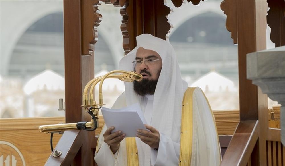 وشدد السديس على أن المسلمين يعيشون شرف الزمان والمكان، وينعمون بطيب المقام ووارِف الأمان، في هذه الأجواء العبقة الأريجة، والجِواءِ المُنشَّرة البهيجة، «لا مَعْدى لنا عن تذكر إخواننا المكلومين في أولى القبلتين ومسرى سيد الثقلين، وفي أكناف بيت المقدس وفي الأرض المباركة وفي بلاد الشام وأراكان وإخواننا في العراق واليمن وغيرها من بلاد المسلمين، فهل تحرِّكُ الأحوال الإنسانية، وبكاءُ اليتامى وصرخاتُ الأيامى تحت أنقاضِ البيوت، ولوعةُ الأرامل، في الظلمات، وحزنُ الملتاعين في المخيمات دعاةَ السلام، ومحاربي الإرهاب، والمدافعين عن حقوق الإنسان؟».