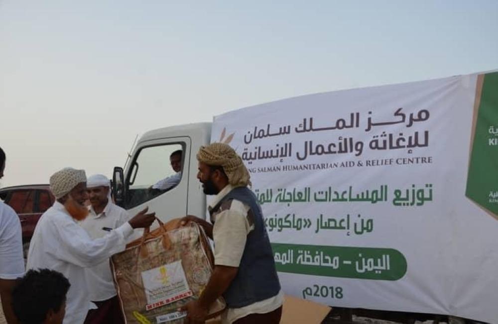 واصل مركز الملك سلمان للإغاثة والأعمال الإنسانية اليوم (الإثنين)، تقديم المساعدات الإيوائية والسلال الغذائية للمتضررين في مديرية الغيضة بمحافظة المهرة ليستفيد منها 1500 فرد من المنكوبين جراء الإعصار «ماكونو».