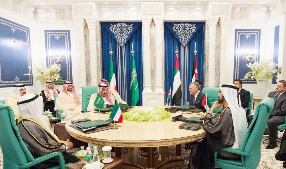وصدر عن الاجتماع الذي عقده خادم الحرمين الشريفين الملك سلمان بن عبدالعزيز في قصر الصفا بمكة المكرمة، مع ملك الأردن عبدالله الثاني، وأمير الكويت الشيخ صباح الأحمد، ونائب رئيس الإمارات الشيخ محمد بن راشد آل مكتوم البيان التالي: