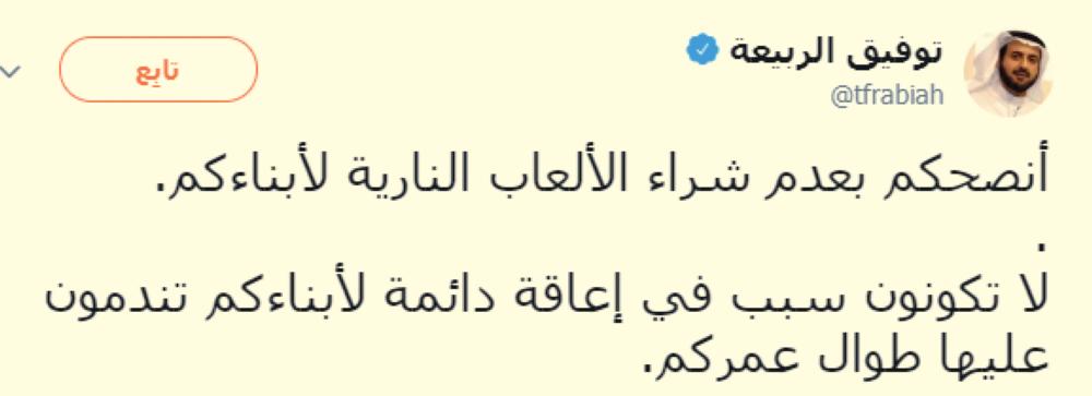 الربيعة متضامناً مع حملة منع «الناريات»: لا تكونوا سبباً في إعاقة أبنائكم