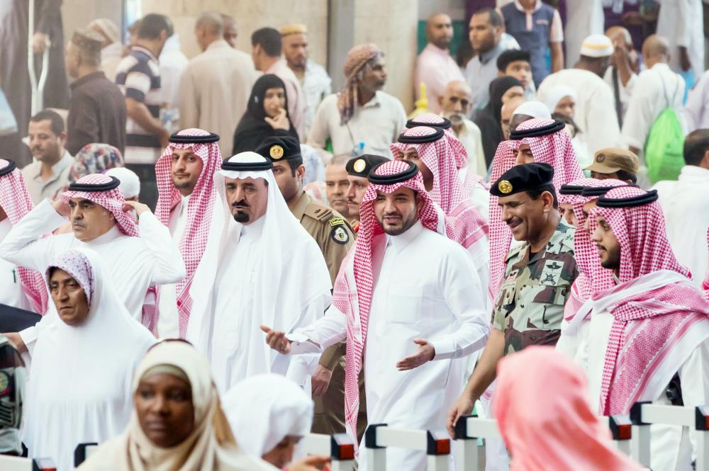 نقل وزير الداخلية الأمير عبدالعزيز بن سعود بن نايف، تحيات وتقدير خادم الحرمين الشريفين الملك سلمان بن عبدالعزيز، وولي العهد نائب رئيس مجلس الوزراء وزير الدفاع الأمير محمد بن سلمان، لرجال الأمن المشاركين في خدمة ضيوف بيت الله الحرام من المعتمرين والزوار.