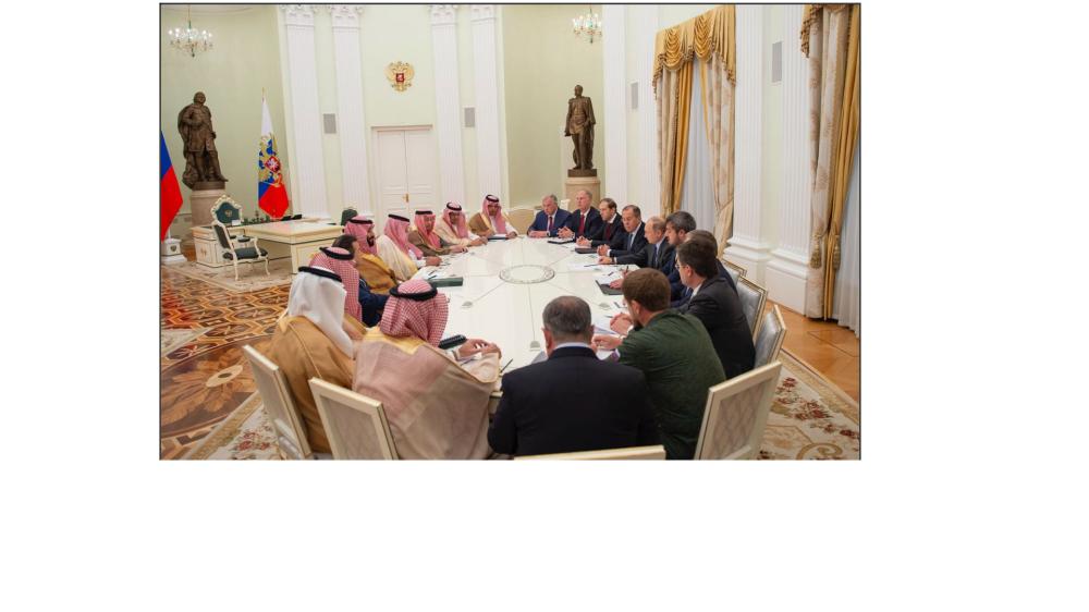 أكد ولي العهد نائب رئيس مجلس الوزراء وزير الدفاع الأمير محمد بن سلمان بن عبدالعزيز، خلال اجتماعه أمس مع الرئيس الروسي فلاديمير بوتين في الكرملين في العاصمة موسكو، أن التعاون السعودي الروسي بشأن أسواق النفط العالمية مفيد للعالم أجمع، لافتا إلى استمرار التعاون بين البلدين.