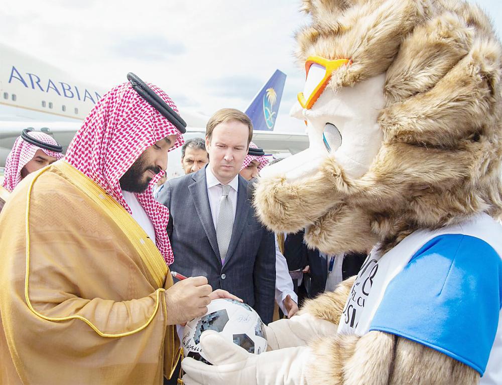 وكان ولي العهد غادر أمس (الخميس)، إلى روسيا. وجاء في بيان صادر من الديوان الملكي أنه «استجابة للدعوة المقدمة للأمير محمد بن سلمان بن عبدالعزيز، من الرئيس الروسي فلاديمير بوتين لزيارة جمهورية روسيا الاتحادية ولقائه وحضور حفل افتتاح بطولة كأس العالم الـ21 ومباراة المنتخب السعودي ونظيره الروسي، ولصدور توجيه خادم الحرمين الشريفين الملك سلمان بن عبدالعزيز بذلك غادر ولي العهد أمس إلى جمهورية روسيا الاتحادية».