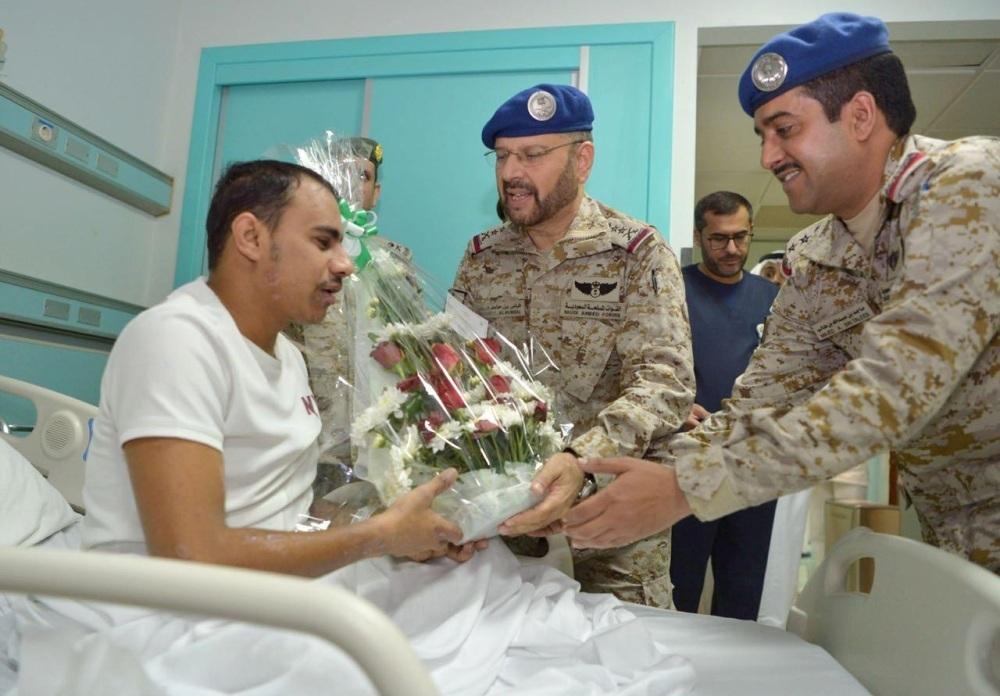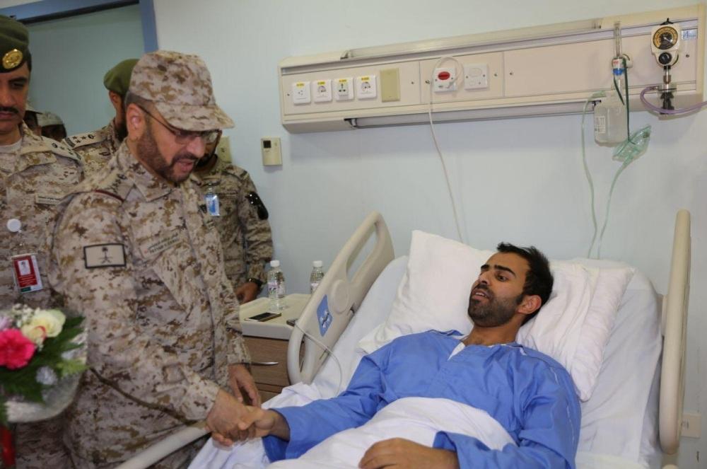 ونقل خلال زيارته للمصابين تحيات وتقدير خادم الحرمين الشريفين الملك سلمان بن عبدالعزيز آل سعود القائد الأعلى لكافة القوات العسكرية وولي العهد نائب رئيس مجلس الوزراء وزير الدفاع الأمير محمد بن سلمان بن عبدالعزيز، مشيداً بالتضحيات الغالية التي يقدمونها للدفاع والحفاظ على أمن واستقرار وسلامة حدود الوطن، وأن بطولاتهم وتضحياتهم عز وفخر للوطن.