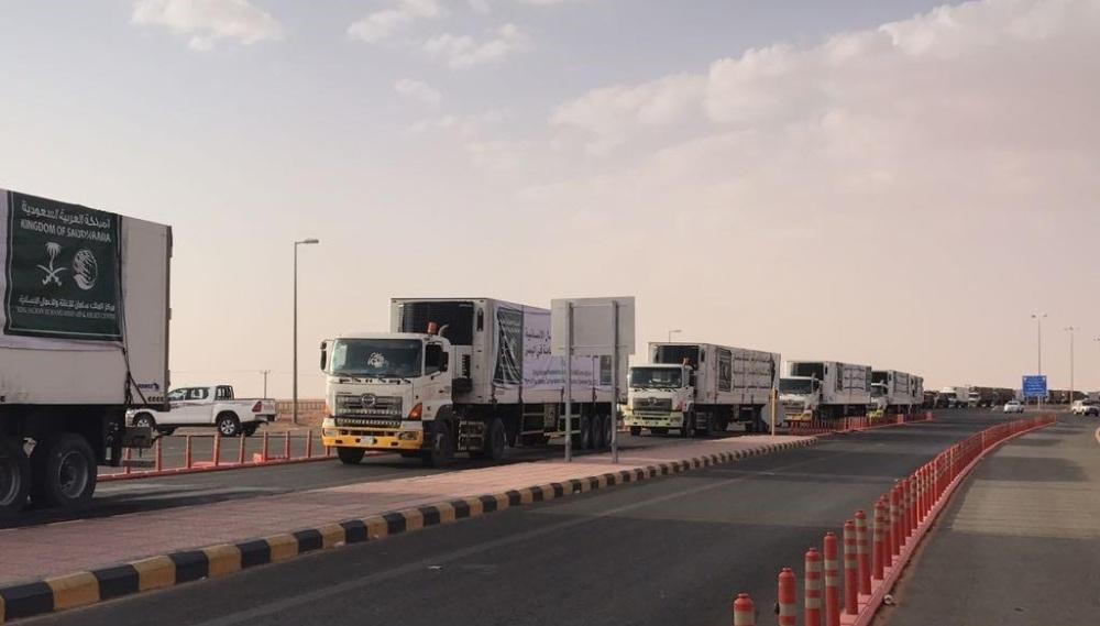 18 شاحنة إغاثية من مركز الملك سلمان تعبر منفذ الوديعة تستهدف الحديدة
