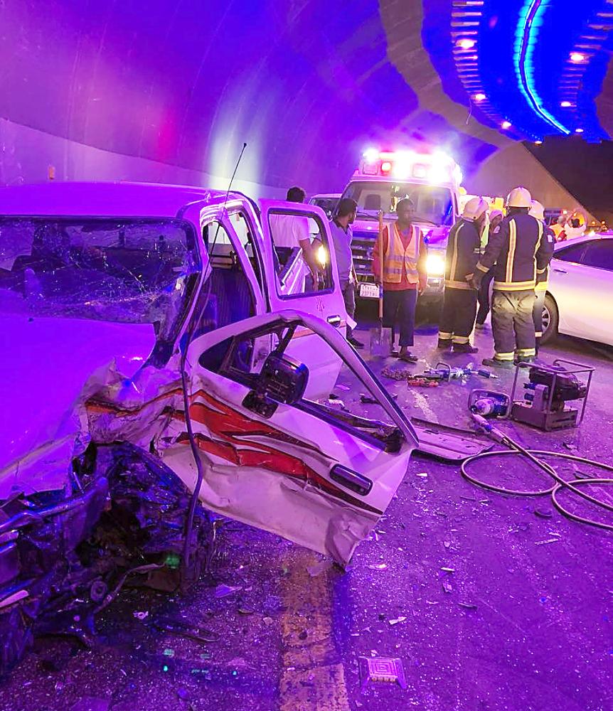 ولفت إلى أن الحادثة الثانية وقعت داخل النفق الحادي عشر وتمت مباشرتها من قبل ثلاث فرق إسعافية، وعند الوصول اتضح إصابة 6 أشخاص جرى نقلهم إلى مستشفى الملك فهد بالباحة للعلاج.